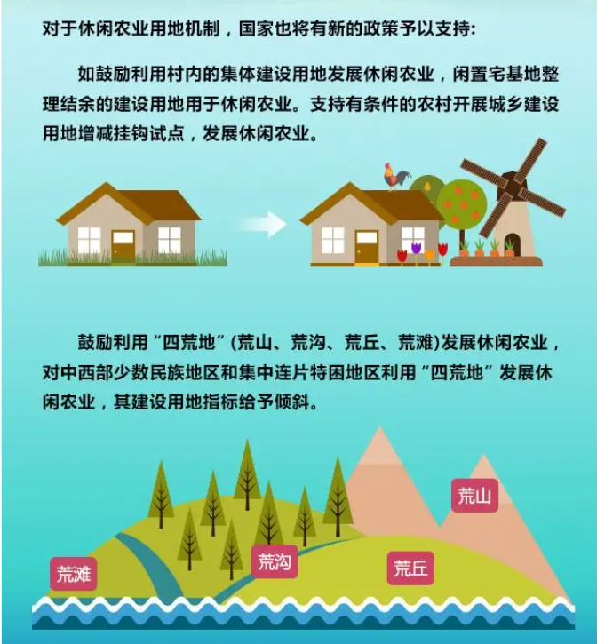通知指出,將安排一定比例年度土地利用計劃,專項支持農(nóng)村新產(chǎn)業(yè)新業(yè)態(tài)和產(chǎn)業(yè)融合發(fā)展。對存量建設(shè)用地用于小微創(chuàng)業(yè)園、休閑農(nóng)業(yè)、鄉(xiāng)村旅游、農(nóng)村電商等農(nóng)村二三產(chǎn)業(yè)的市、縣,可給予新增建設(shè)用地計劃指標獎勵。宅基地“三權(quán)分置”,市場化運作的多方共贏