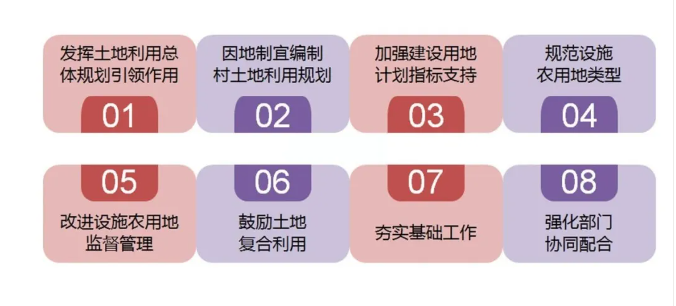 2017年12月,國土資源部、國家發(fā)展改革委聯(lián)合印發(fā)的《關(guān)于深入推進農(nóng)業(yè)供給側(cè)結(jié)構(gòu)性改革做好農(nóng)村產(chǎn)業(yè)融合發(fā)展用地保障工作的通知》從八個方面明確了保障農(nóng)村產(chǎn)業(yè)融合發(fā)展用地的政策。
